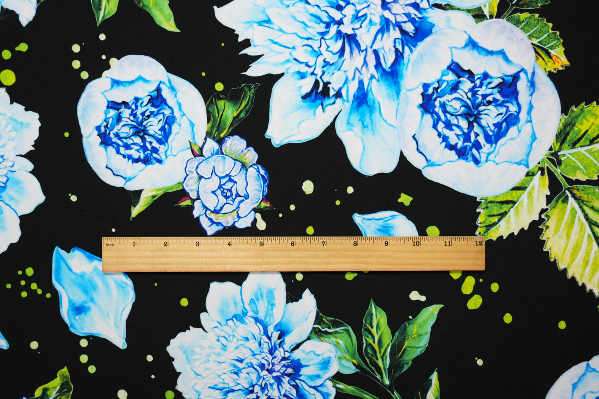 Blue-Multi Poly Stretch Floral Printed ITY Jersey Knit Fabric