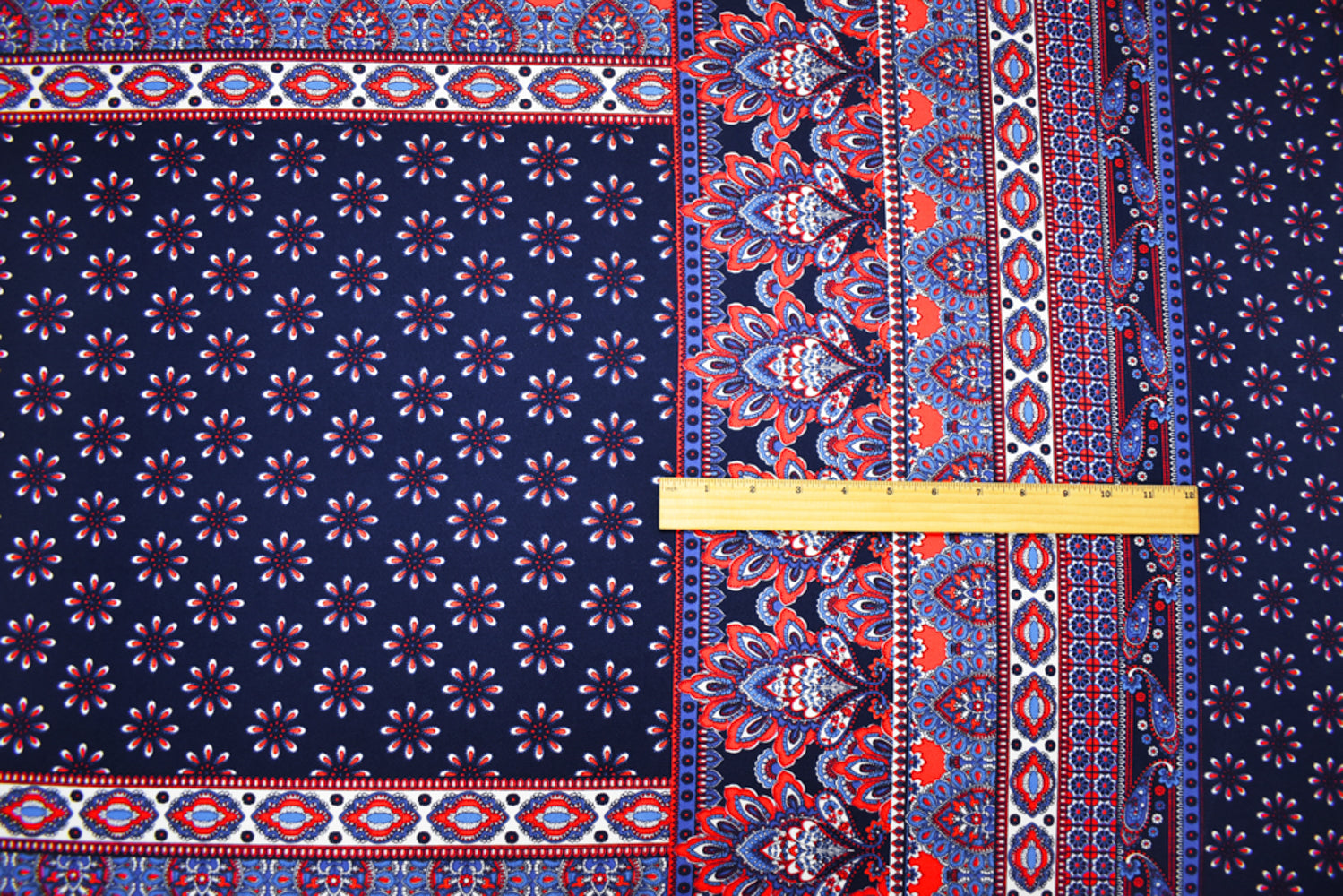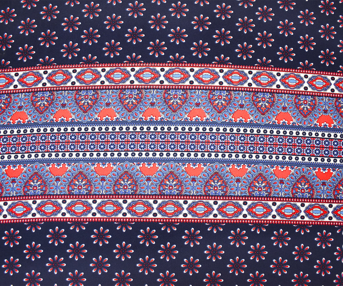 -Blue-Multi Poly Stretch Spandex Multi Pattern Printed ITY Crepe Knit Fabric