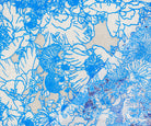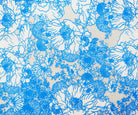 Blue-White Cotton Nylon Floral Printed Lace Mesh Knit Fabric