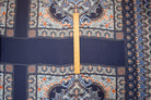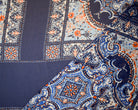 Blue-White-Orange Poly Moroccan Bandana PANEL Printed Chiffon Woven Fabric