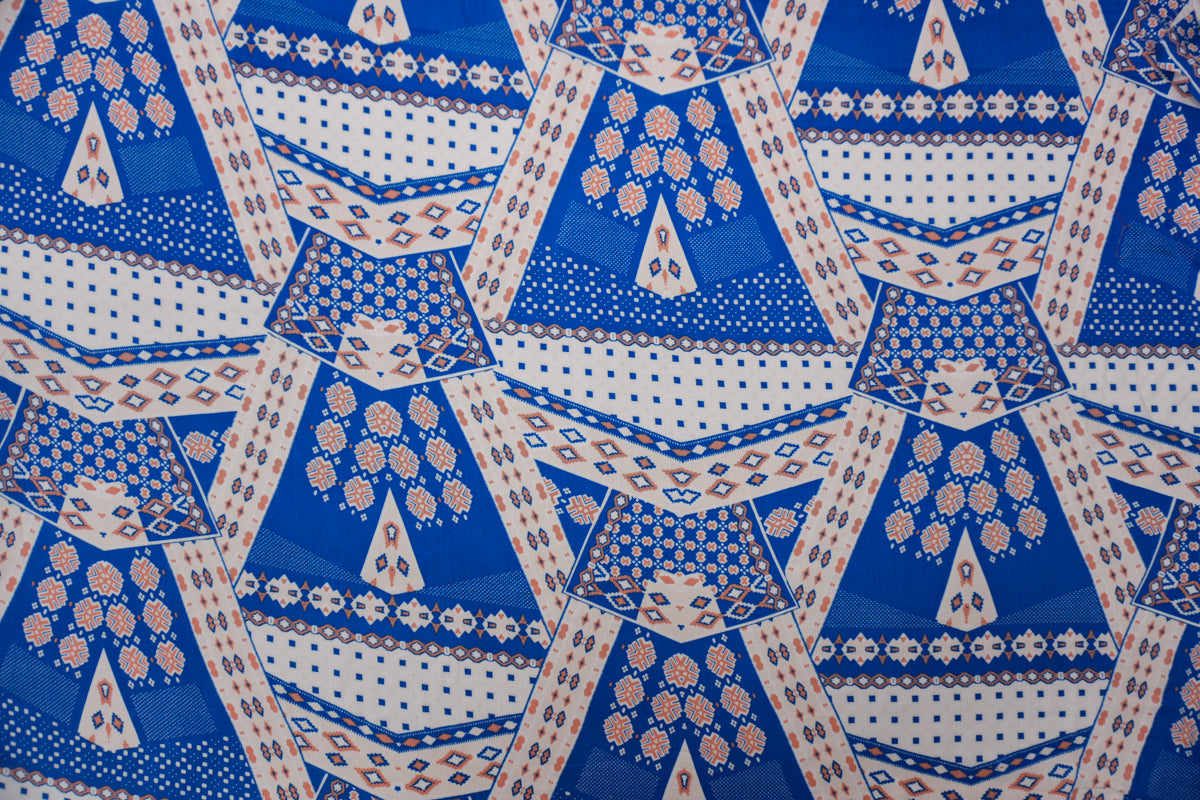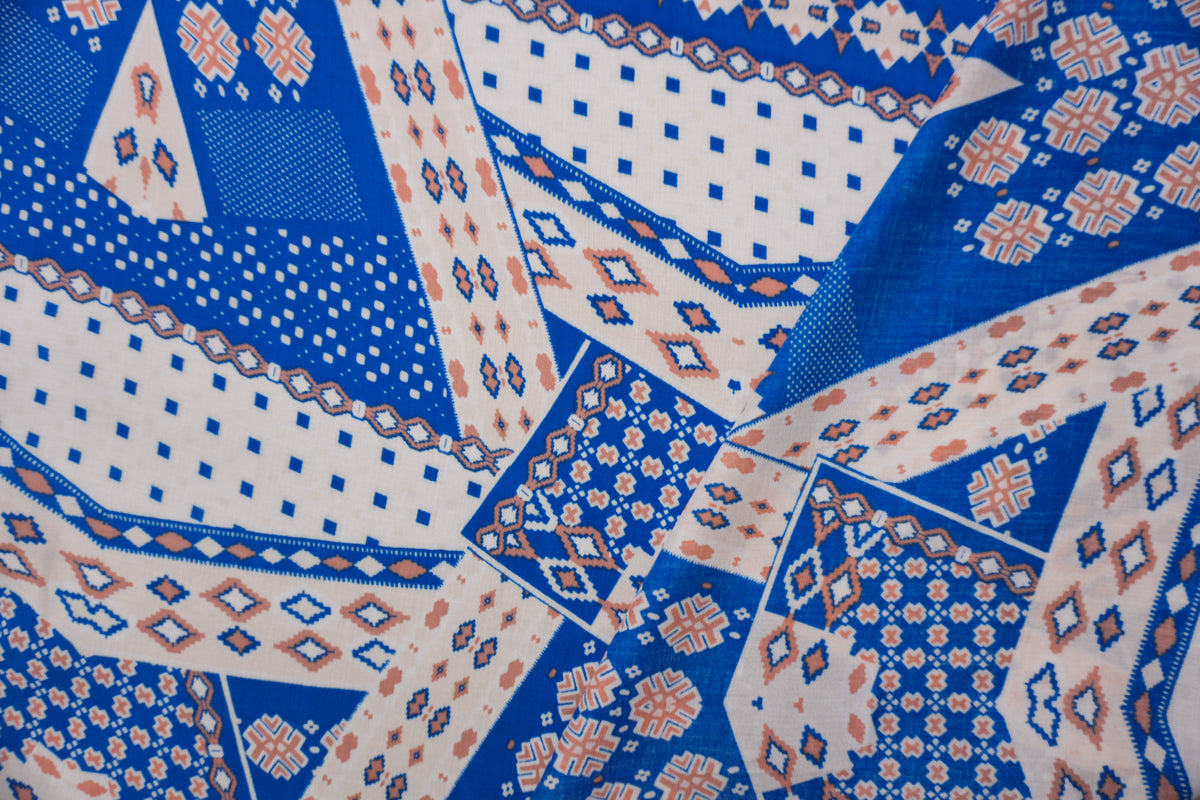 Blue-White-Orange Rayon Aztec Printed Voile Woven Fabric