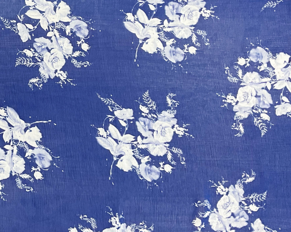 -Blue-White Poly Floral Printed Chiffon Woven Fabric