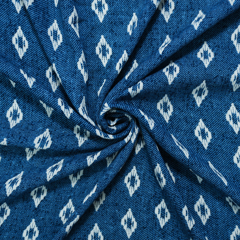 Blue-White Rayon Ikat Printed Crepe Woven Fabric