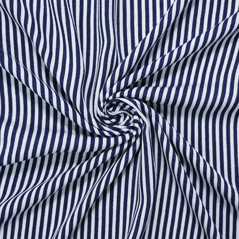 Blue-White Rayon Stripe Gauze Woven Fabric