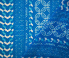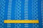 Bright Blue-White Moroccan Geo Striped Printed Chiffon Woven Fabric