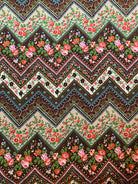 -Red, Pink, White, Green, Blue, Beige, Brown, & Orange Floral Chevron Print Rayon Challis Fabric