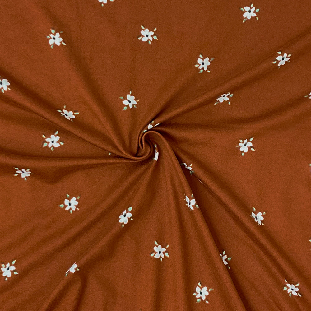 -Brwon-Multi Poly Spandex Stretch Floral Print Double Brush Jersey Knit Fabric