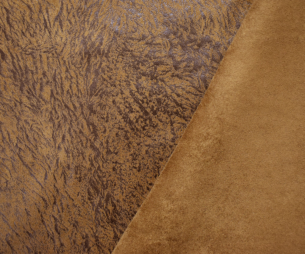 -Polyester stretch spandex microsuede knit fabric printed with a lustrous textured-like pattern.