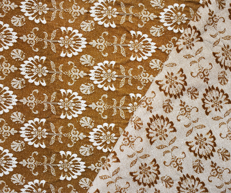 Brown Rayon Blend Floral Motif Bengaline Jacquard Woven Fabric