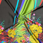 -Brown-Yellow-Multi Poly Floral Border Printed Dull Charmeuse Satin Woven Fabric