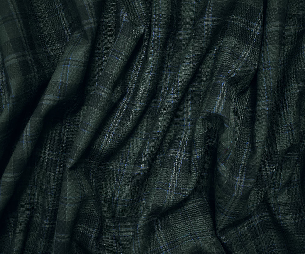 Deep Navy-Green-Multi Poly-Wool Japanese Plaid Woven Shirting Fabric