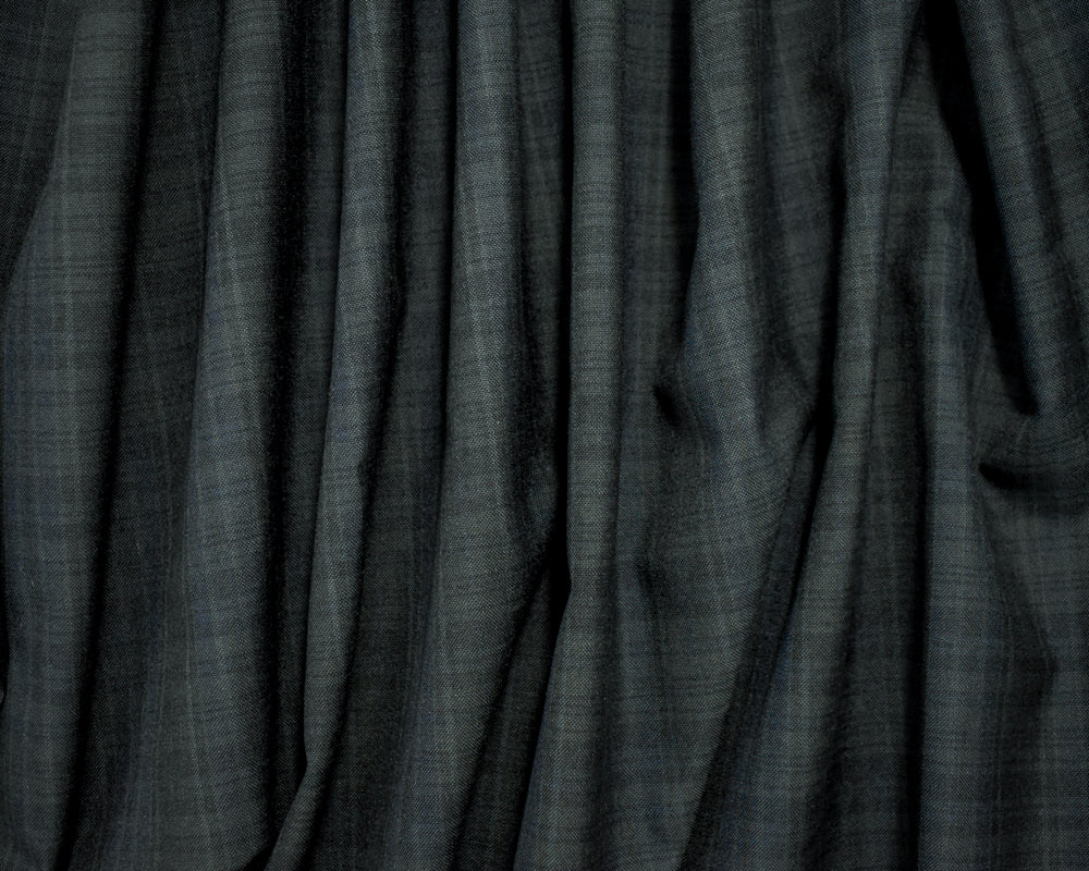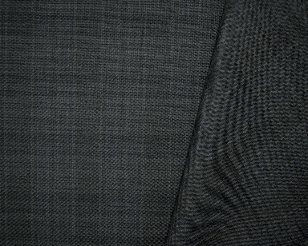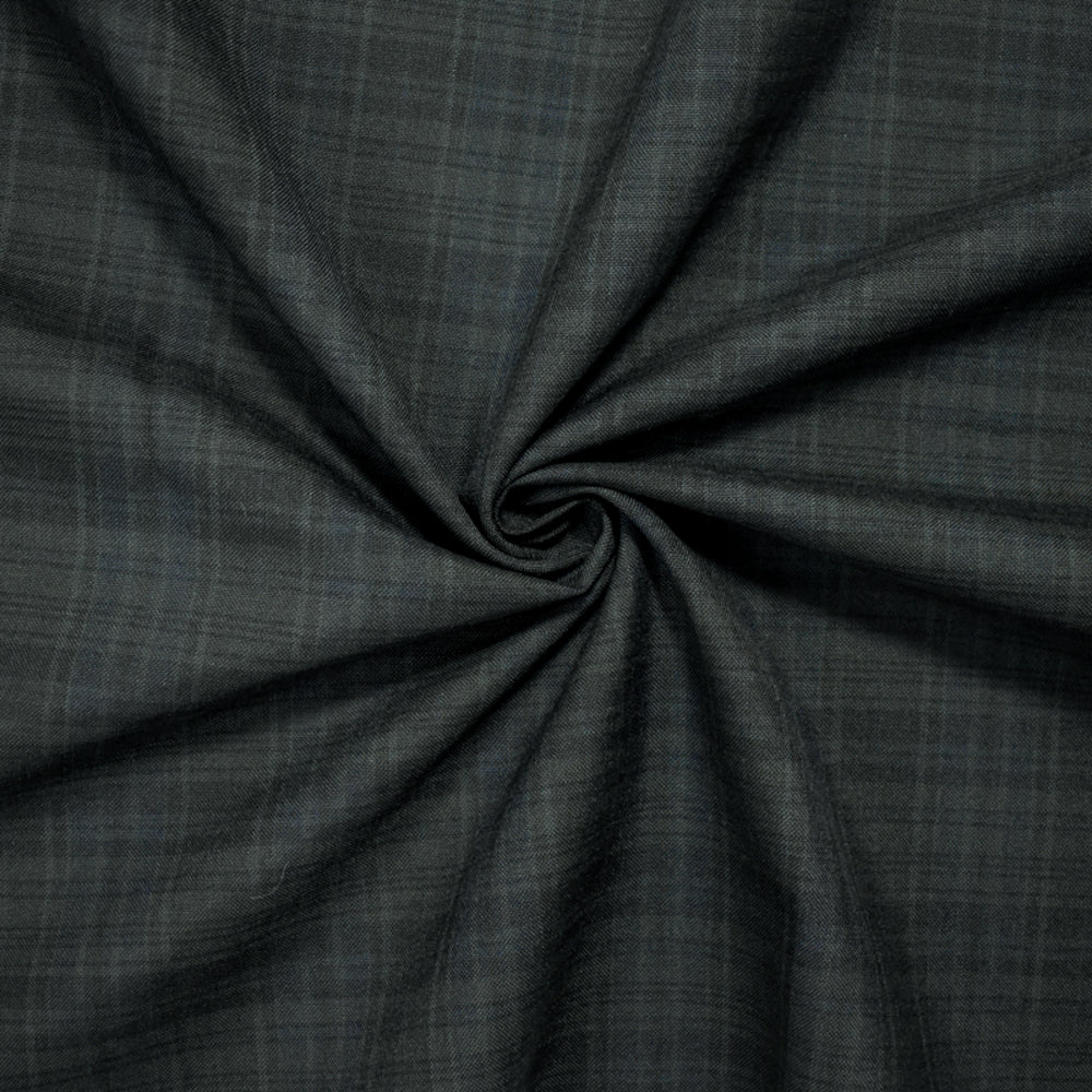 Gray-Black-Blue Tropical Wool-Poly Japanese Plaid Woven Shirting Fabric