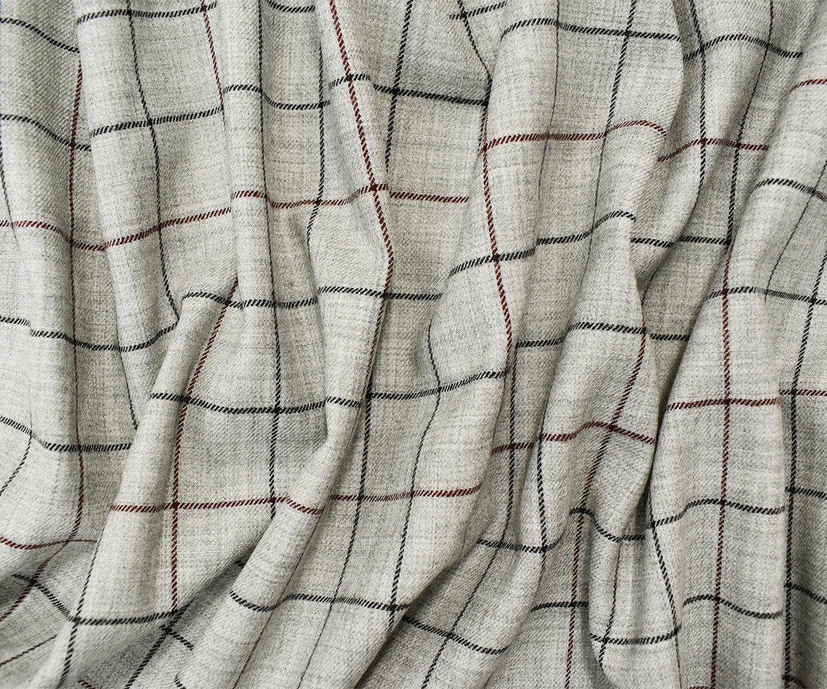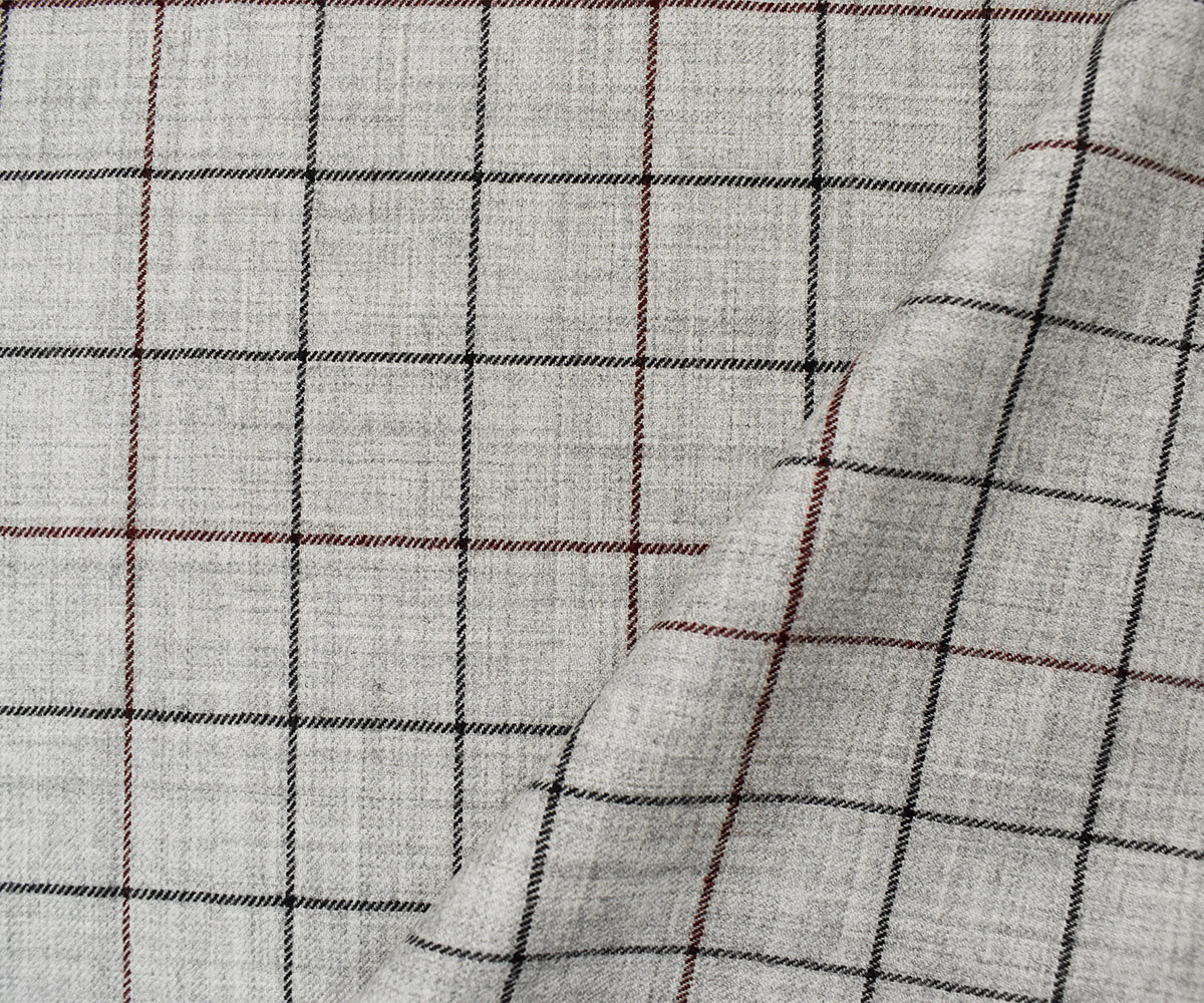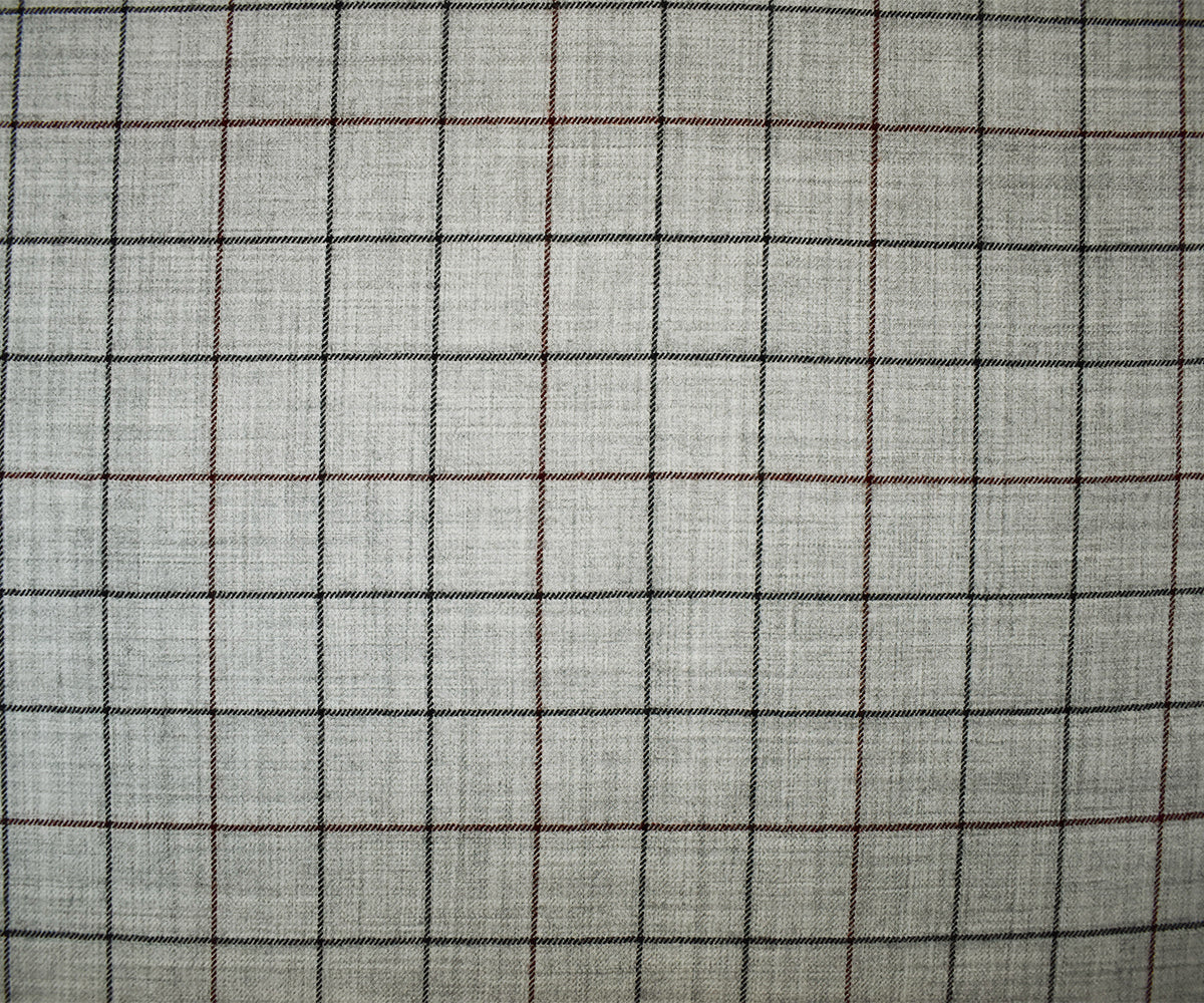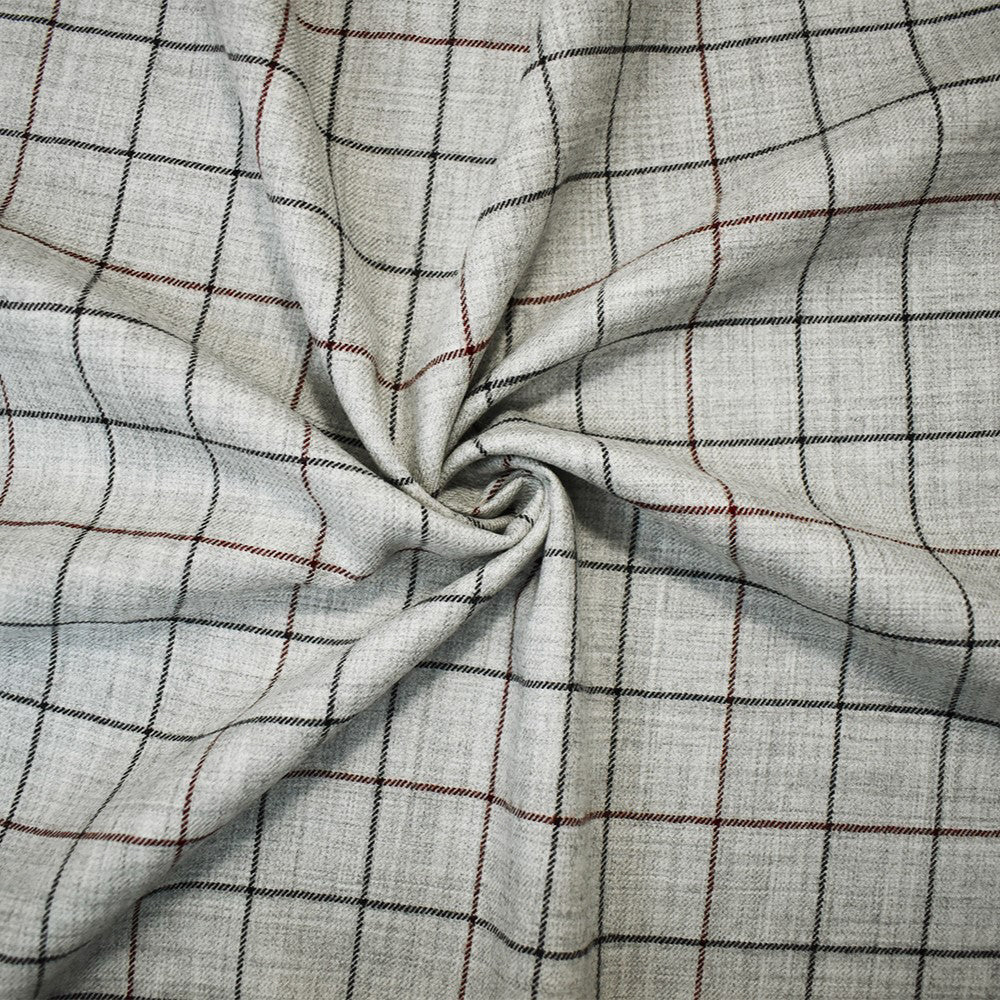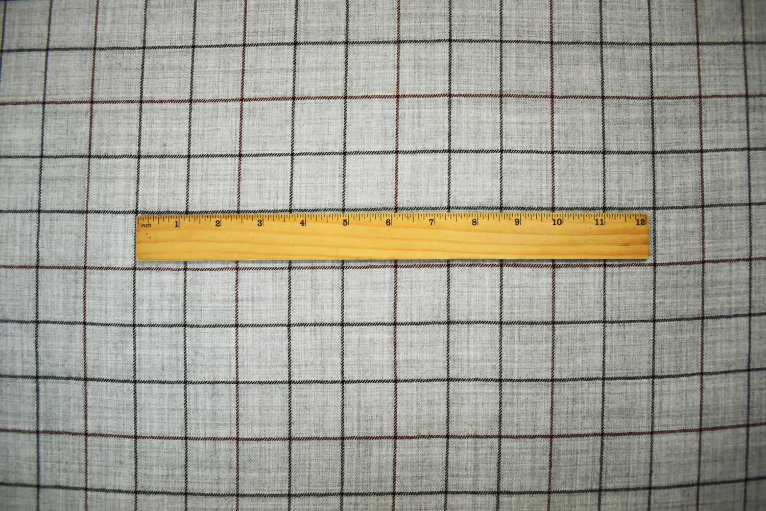 Gray-Black-Red Wool Poly Plaid Twill Woven Suiting Fabric