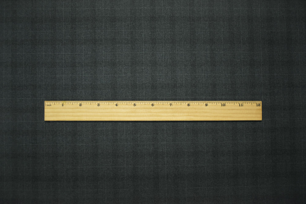 -Poly and wool blend plaid-check twill woven suiting fabric. Made in Japan.