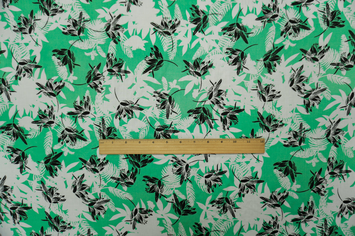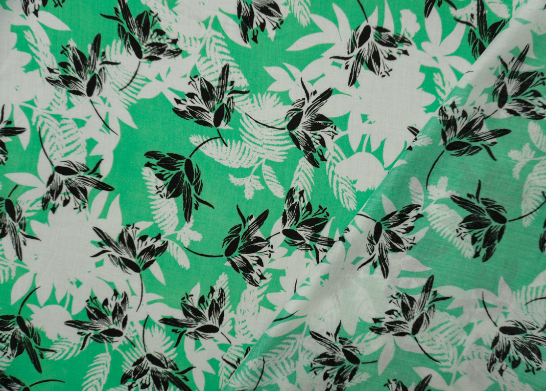 Green-Black-White Rayon Floral Printed Voile Woven Fabric