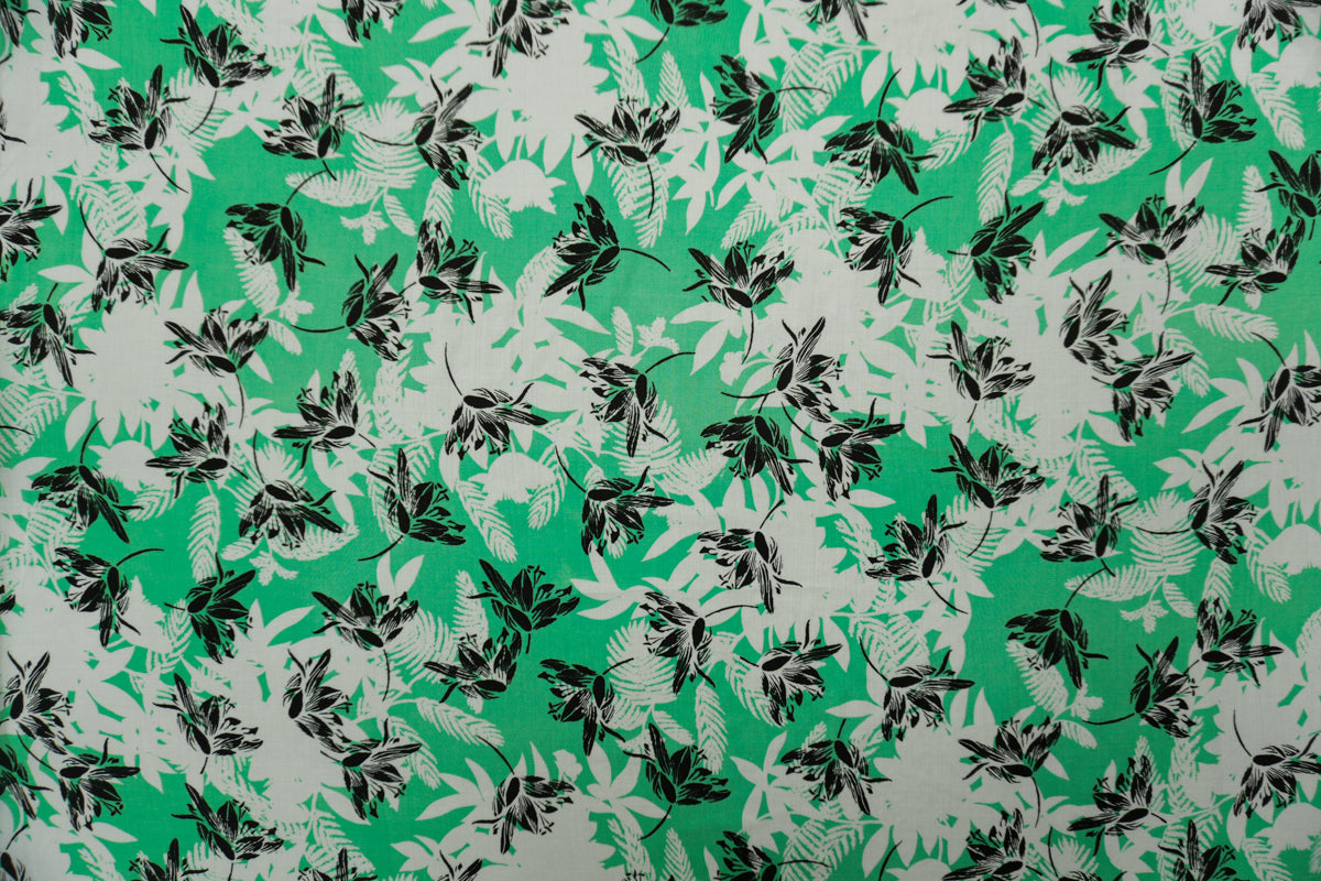 -Green-Black-White Rayon Floral Printed Voile Woven Fabric