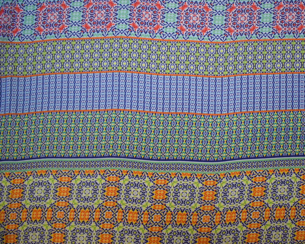 -Green-Blue-Multi Poly Stripe Aztec Printed Chiffon Woven Fabric