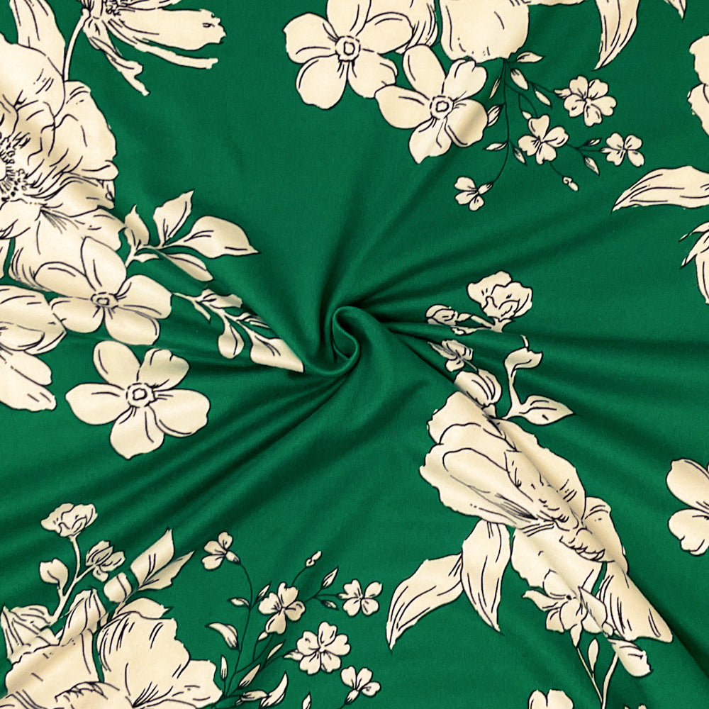 Green-Multi Poly Stretch Spandex Floral Print DB Jersey Knit Fabric