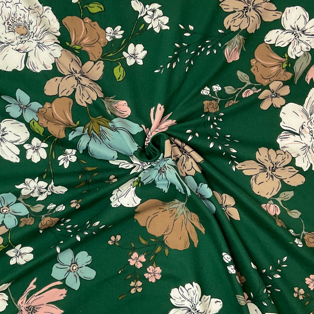 Green-Multi Poly Stretch Spandex Floral Print DB Jersey Knit Fabric