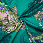 Green-Pink-Multi Poly Paisley Printed Charmeuse Satin Woven Fabric