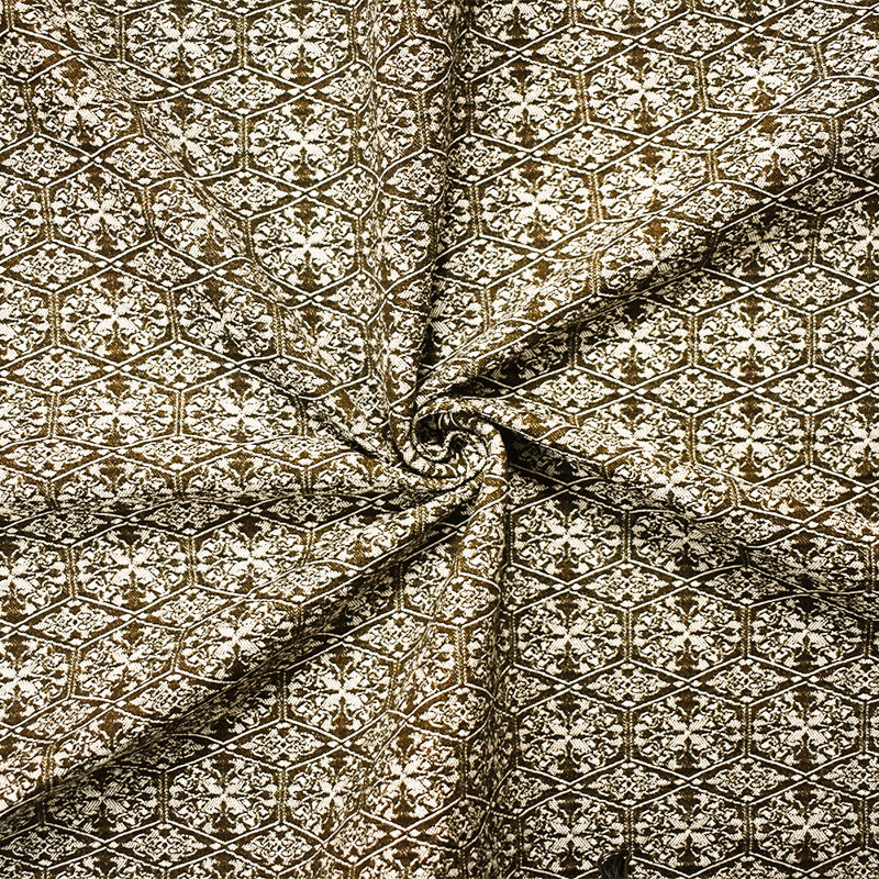 -240 gsm, Rayon blend stretch spandex tile and baroque-like patterned jacquard woven fabric