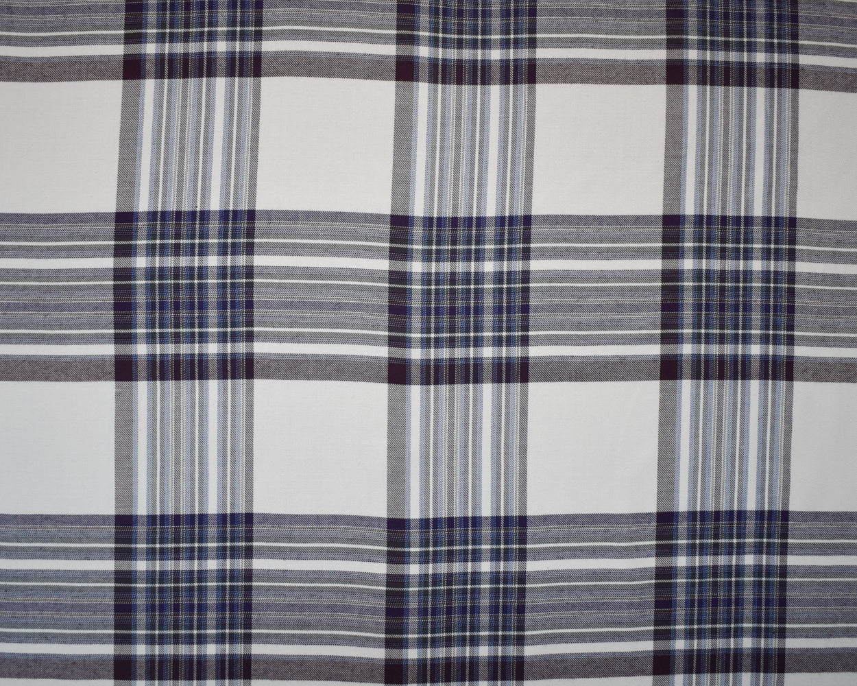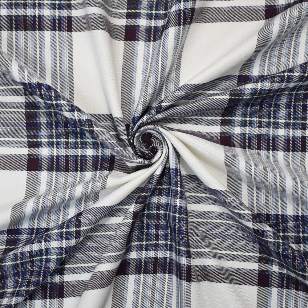 Ivory-Blue-Multi Cotton Famous Maker Plaid Twill Flannel Woven Fabric