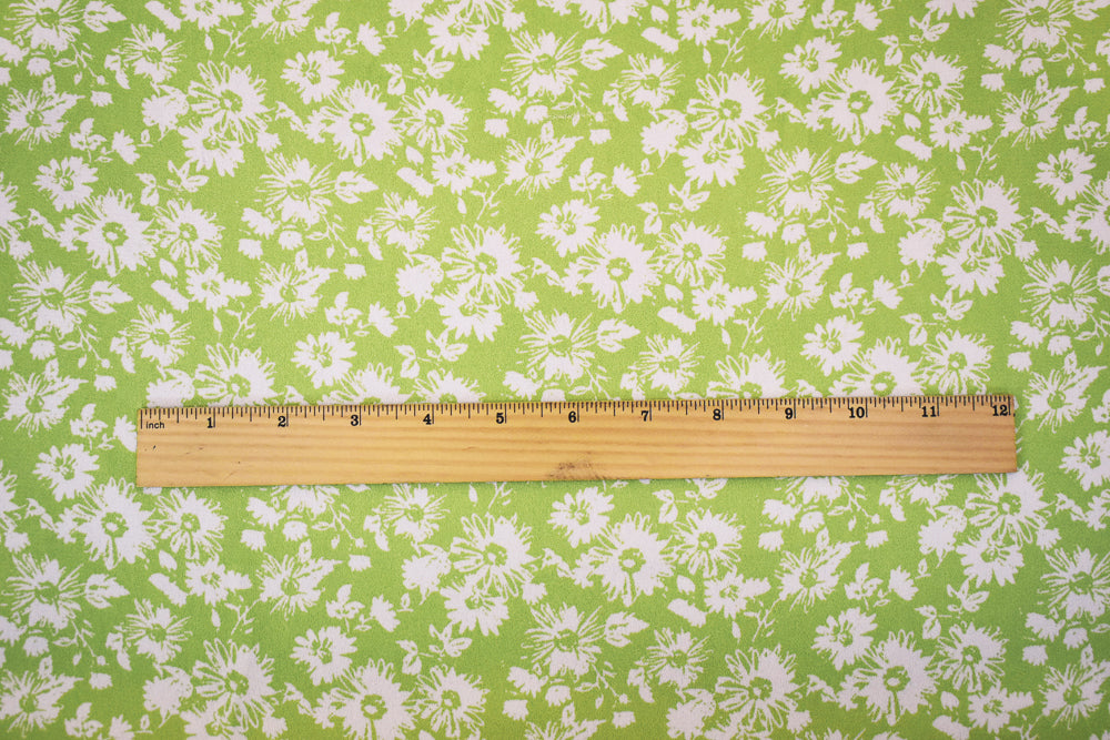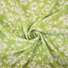 Lime Green Poly Floral Printed Crepe Dobby Woven Fabric