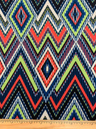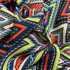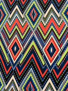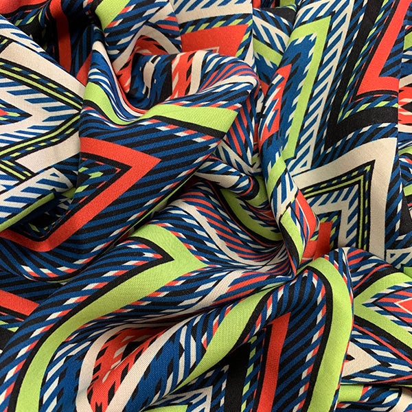 -Lime Green, Blue, White, Orange, & Black Multi Diamond Print Rayon Challis Fabric