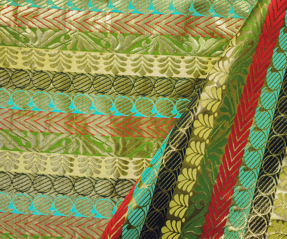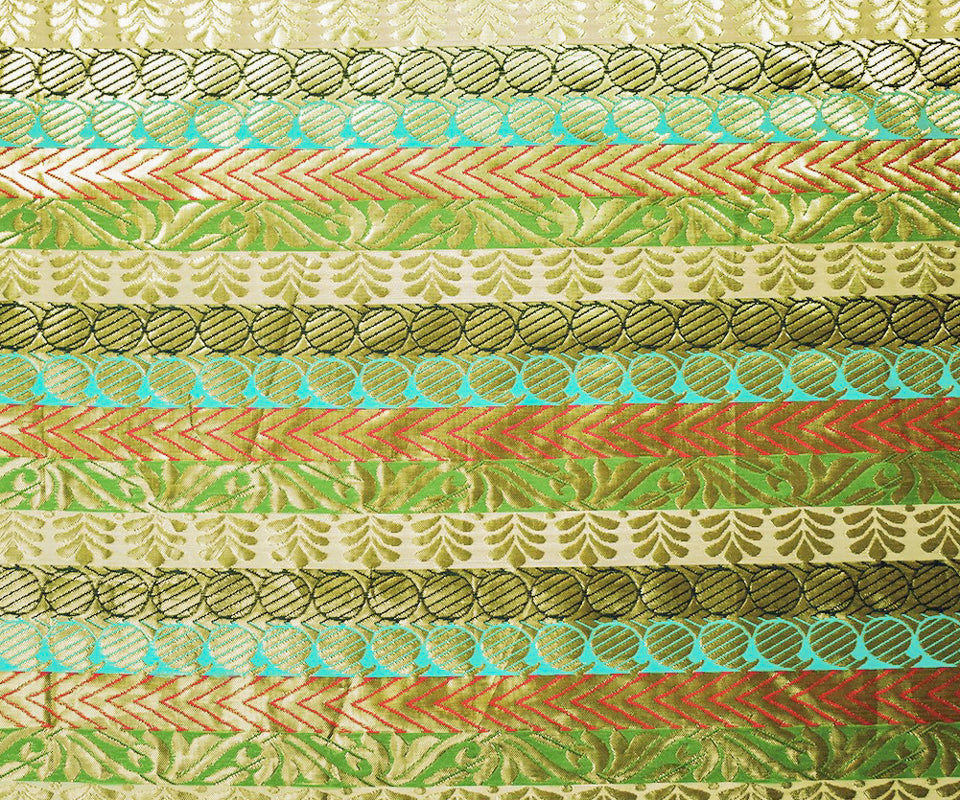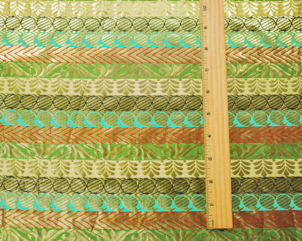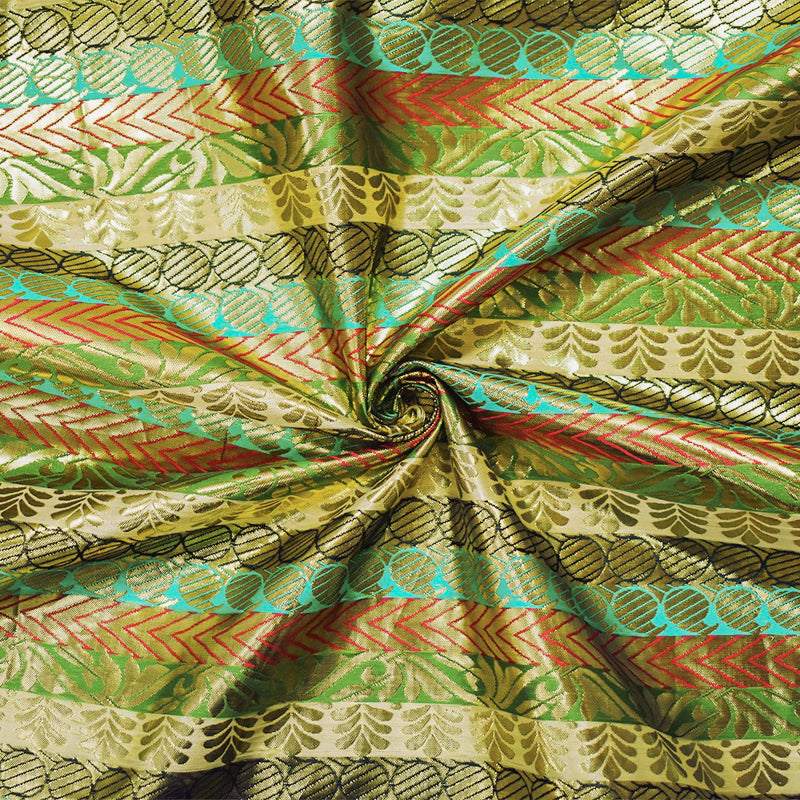 Metallic Gold-Red-Multi Stripe Pillar Jacquard Brocade Woven Fabric