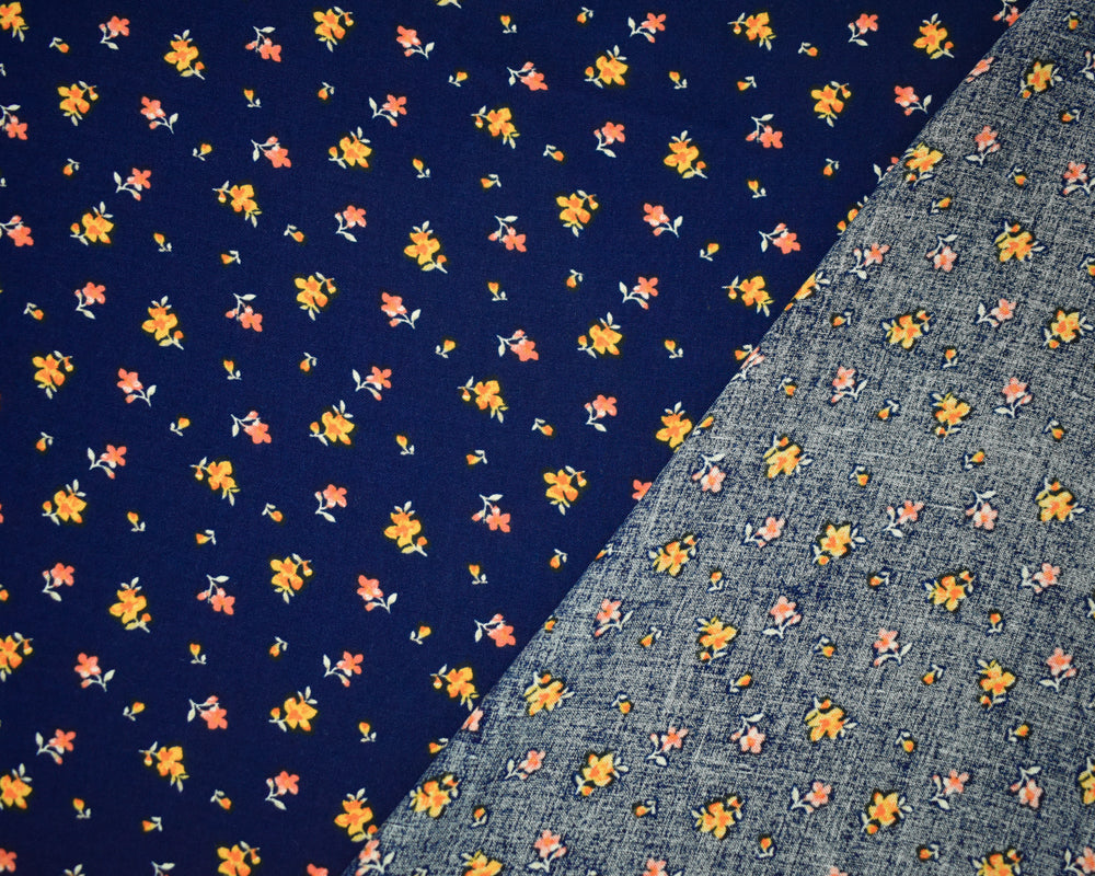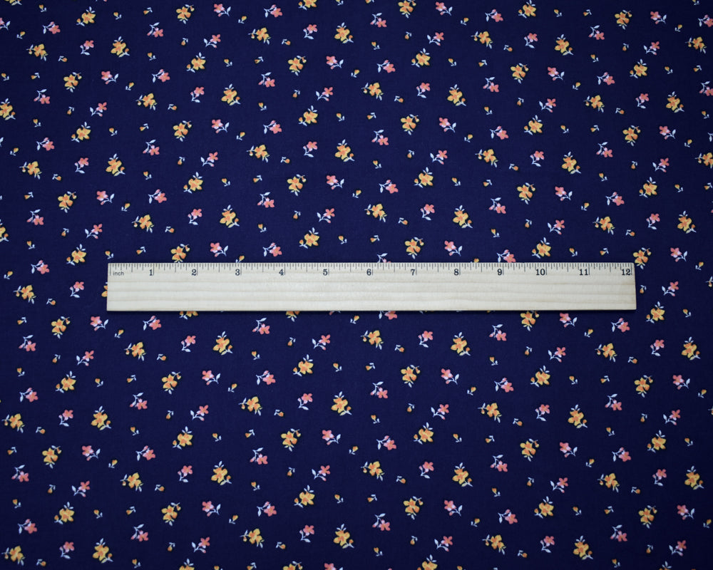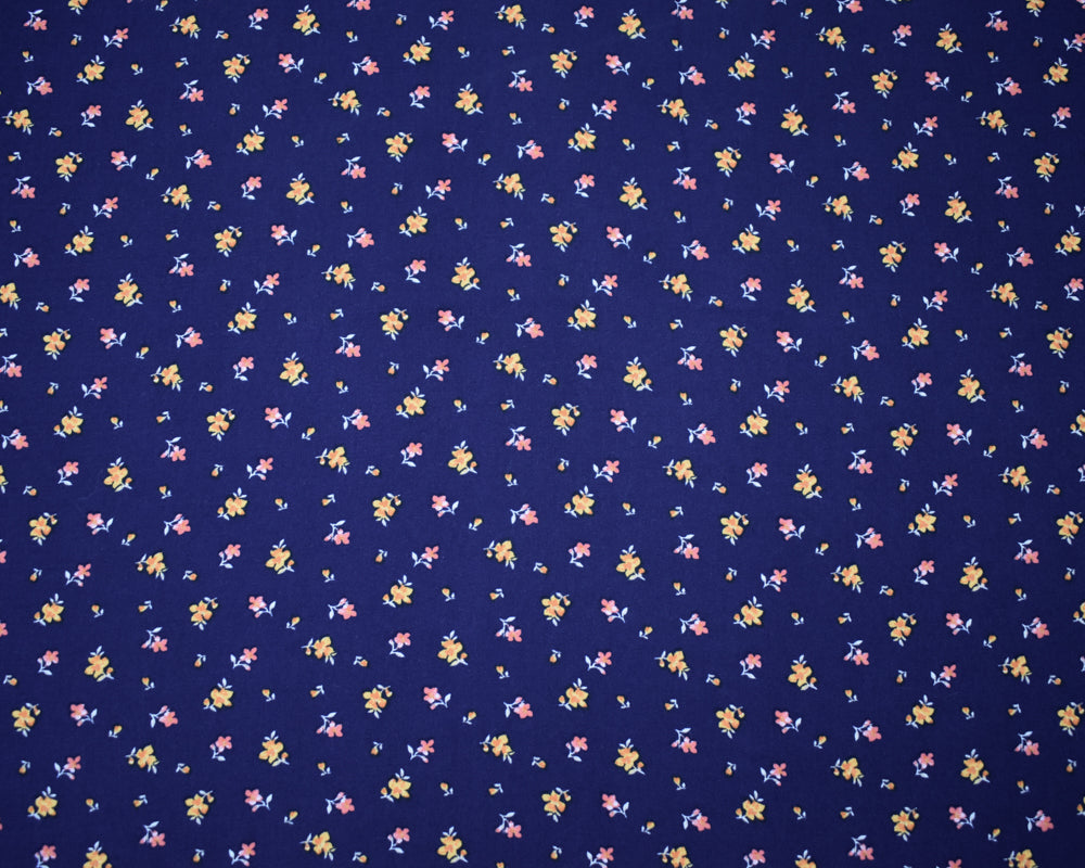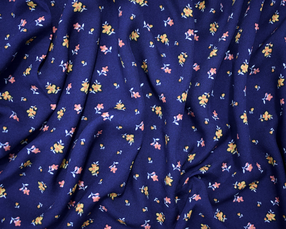 Navy-Orange Multi Rayon Ditsy Floral Printed Challis Woven Fabric