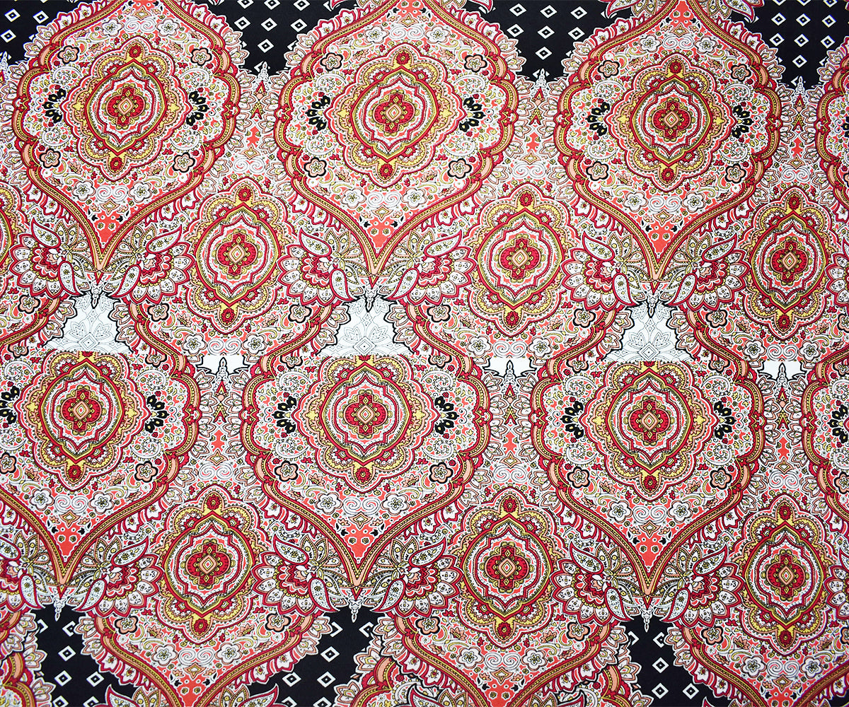 Orange-Black-Multi Cotton Stretch Spandex Moroccan Printed Jersey Knit Fabric