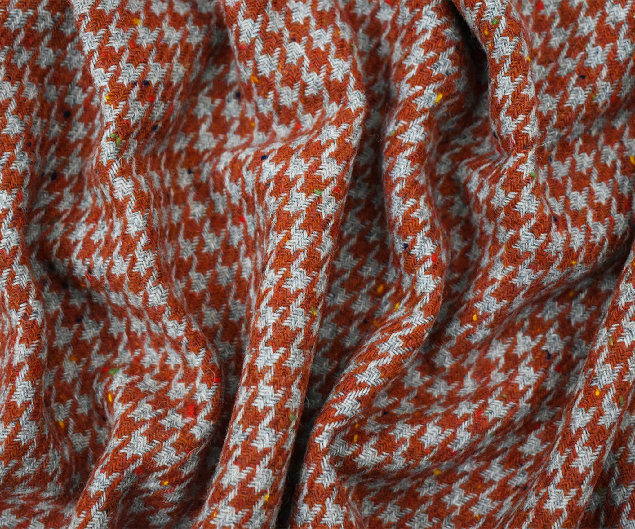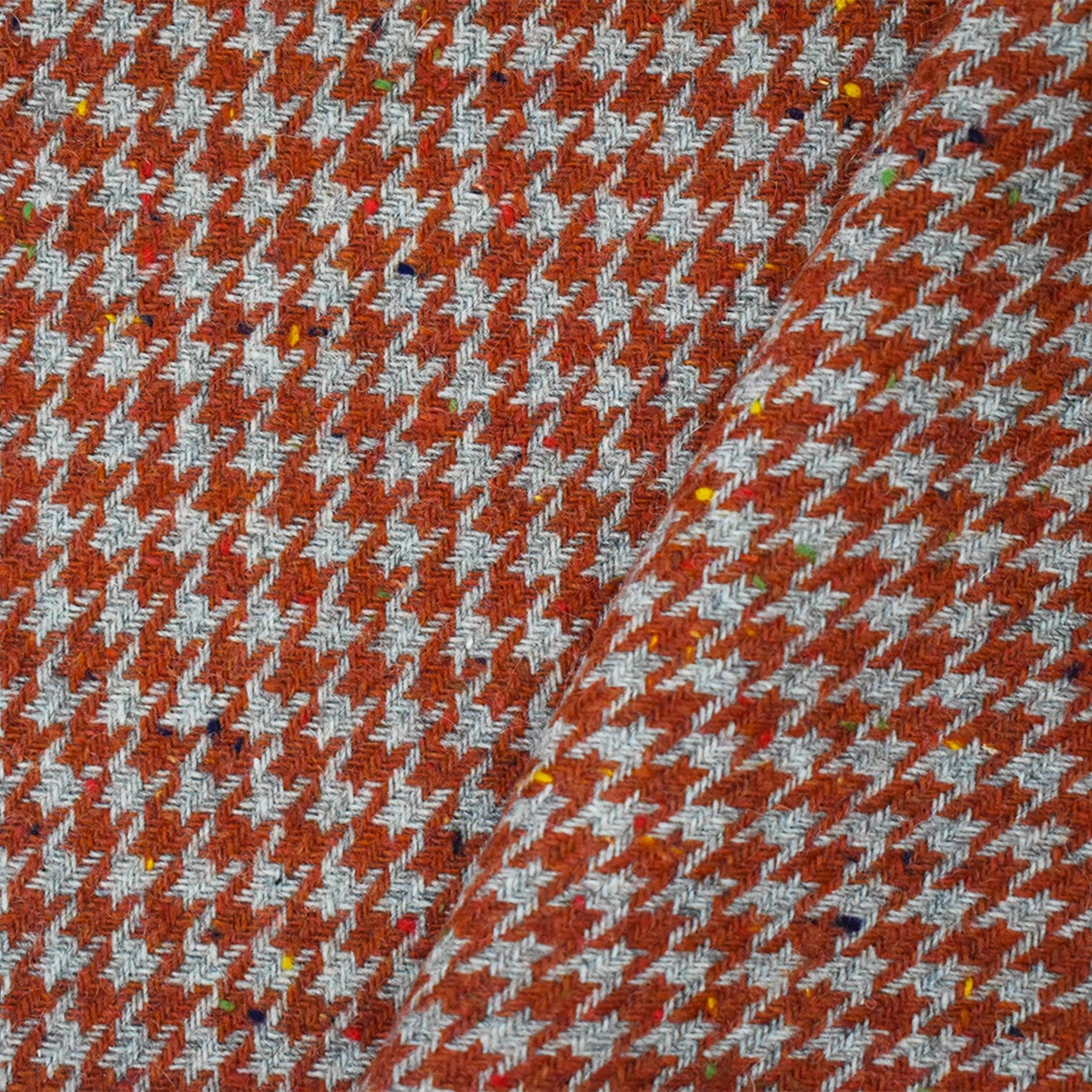 Orange-Gray Wool Houndstooth Woven Jacketing Fabric