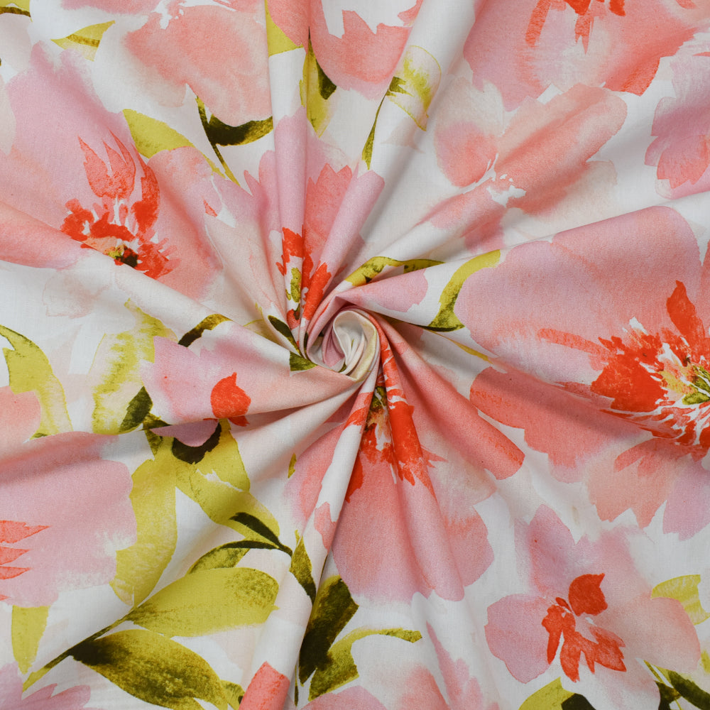 -100% Cotton plain woven broadcloth fabric printed with a stylized floral pattern