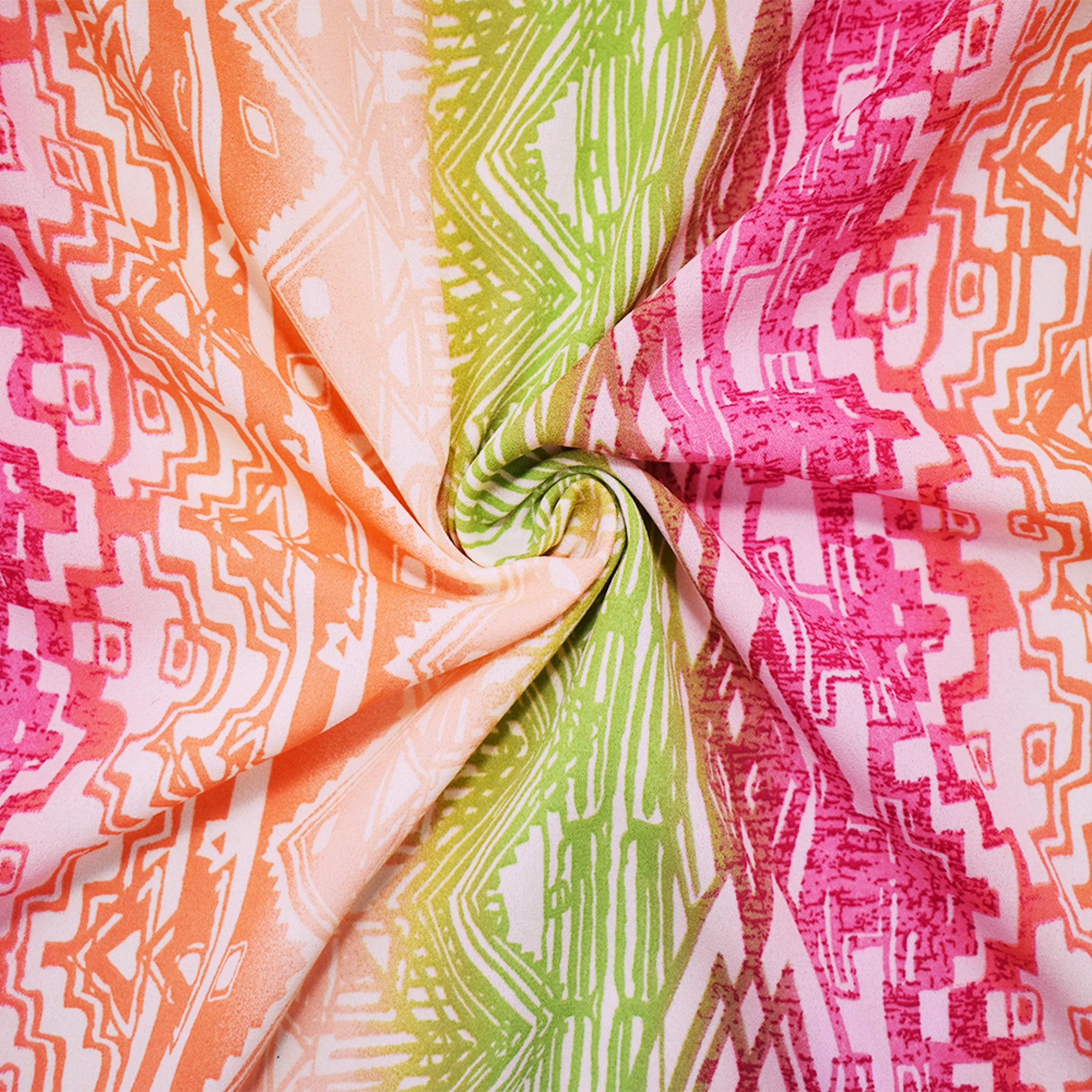 Orange-Multi Poly Aztec Ombre Printed Crepe Momie Georgette Woven Fabric