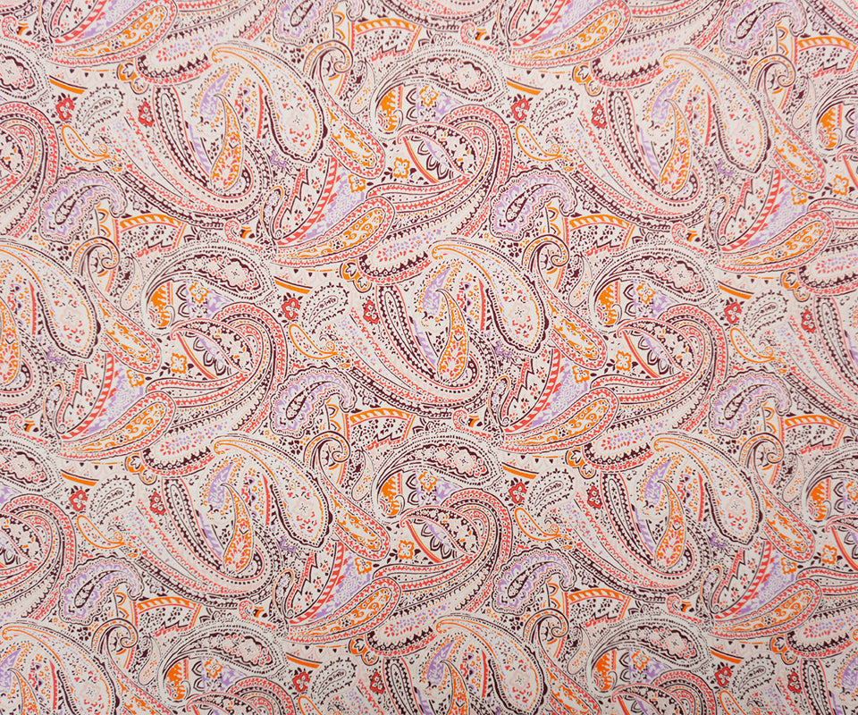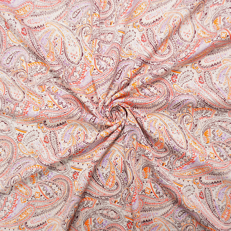 Orange-Multi Washed Rayon Paisley Printed Twill Woven Fabric