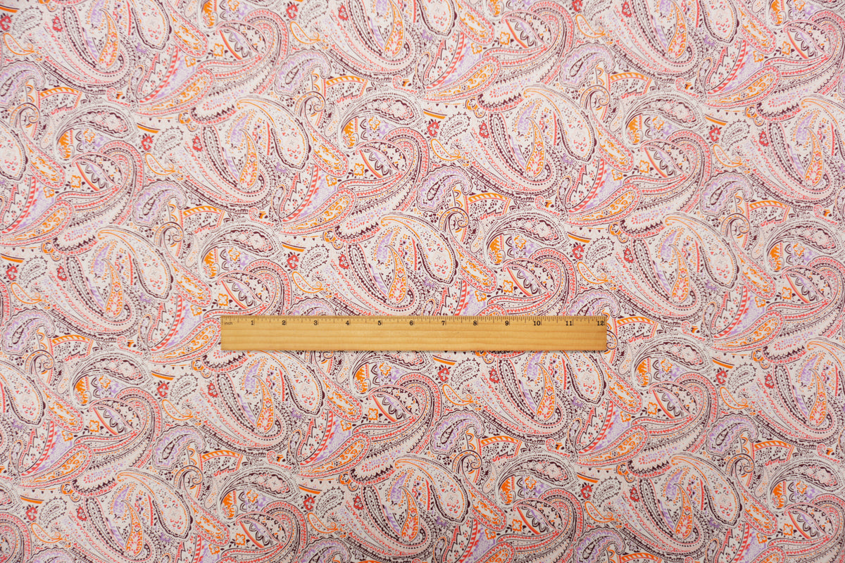 -Orange-Multi Washed Rayon Paisley Printed Twill Woven Fabric