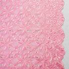 Pastel Pink Polyester Floral Circle Scalloped Rhinestone Woven Fabric
