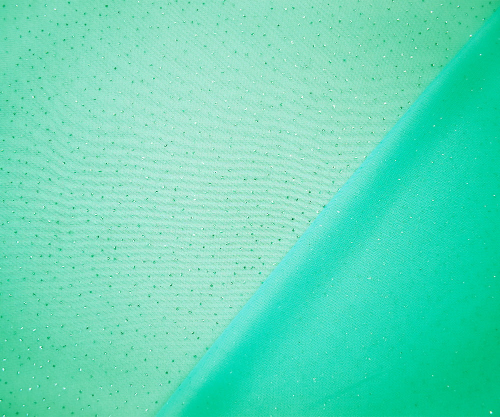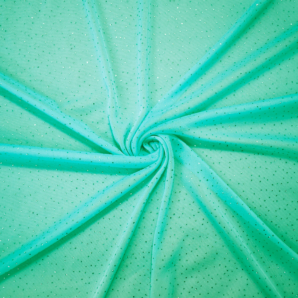 -Pastel Teal Polyester Metallic Sparkle Dot Mesh Knit Fabric