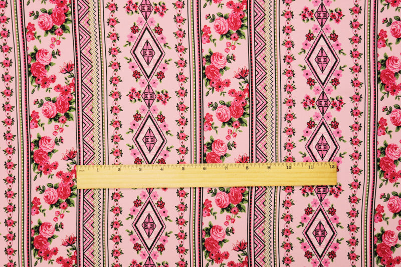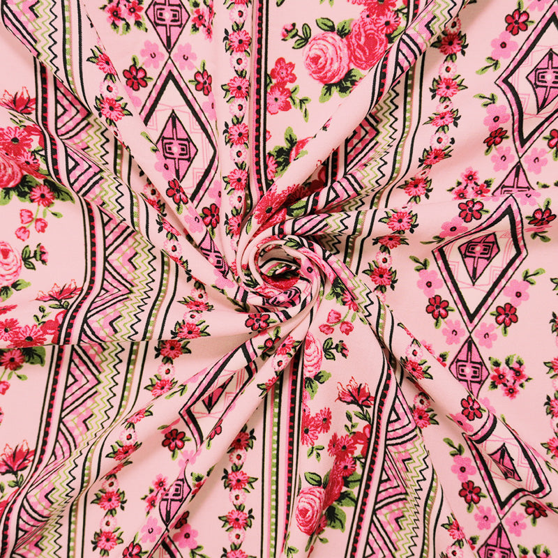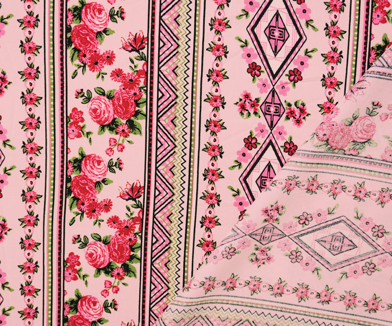 Pink-Black-Multi Rayon Floral Aztec Printed Challis Woven Fabric