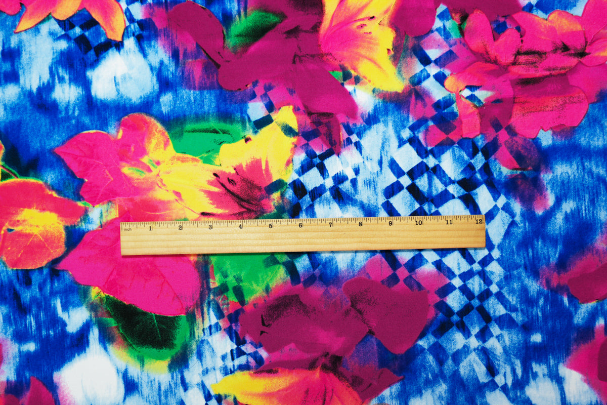Pink-Blue-Multi Poly Stretch Floral Print ITY Jersey Knit Fabric