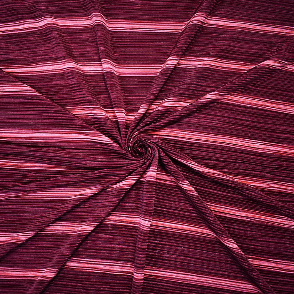 -Pink Poly Stretch Spandex Stripe Printed Pleat Interlock Knit Fabric