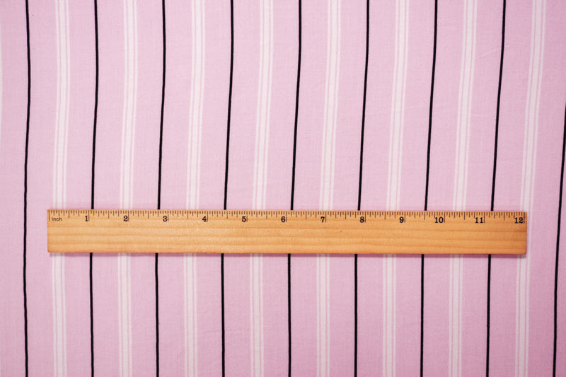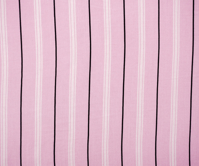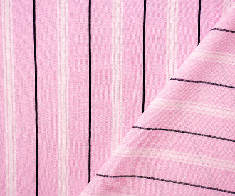 Pink-White-Black Rayon Stripe Printed Challis Woven Fabric