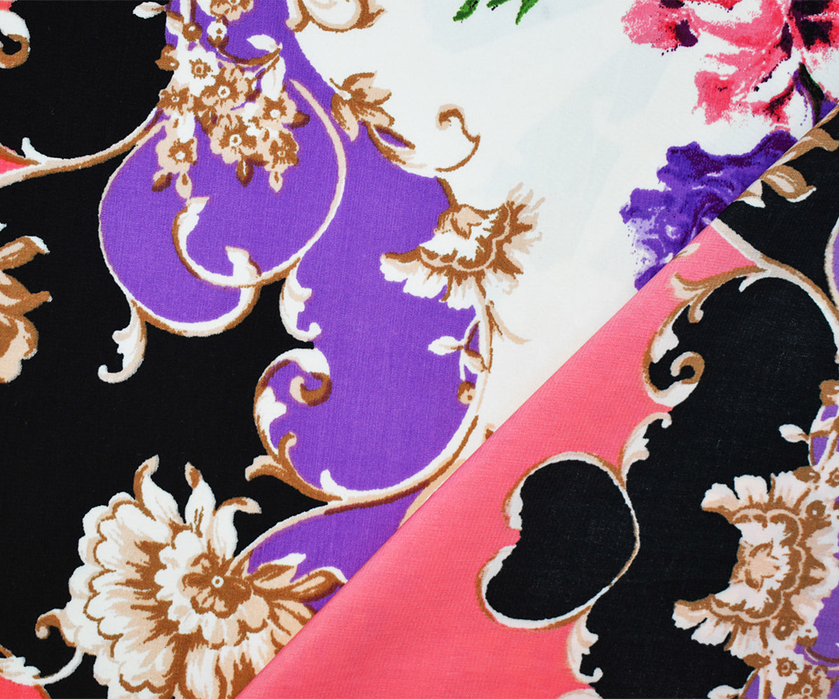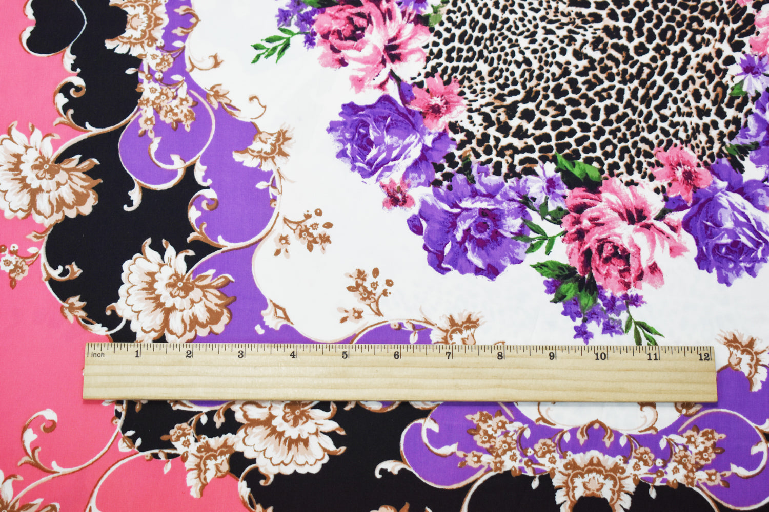 Purple-Multi Poly Floral Multi-Pattern Border Printed Faille Woven Fabric