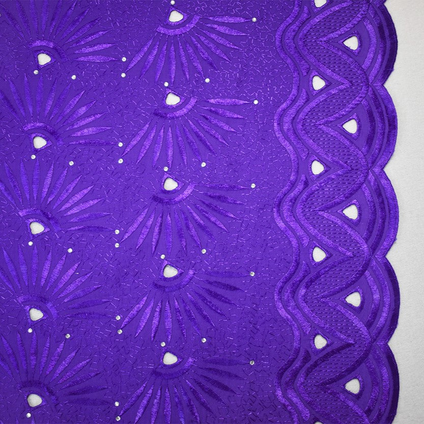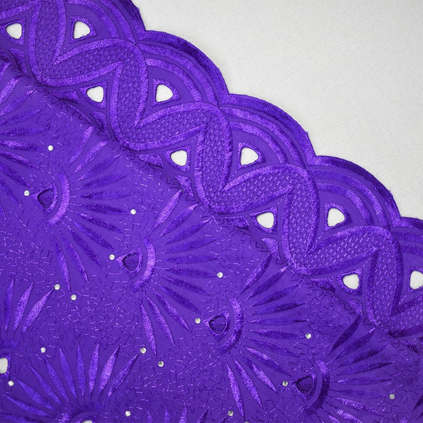 Purple Poly-Cotton Embroidered Abstract Scallop Rhinestone Woven Fabric