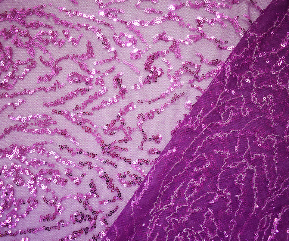 Purple Polyester Abstract Sequined Mesh Tulle Fabric