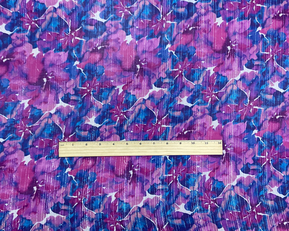 Purple-Silver-Multi Floral Printed Metallic Crinkle Yoryu Chiffon Woven Fabric