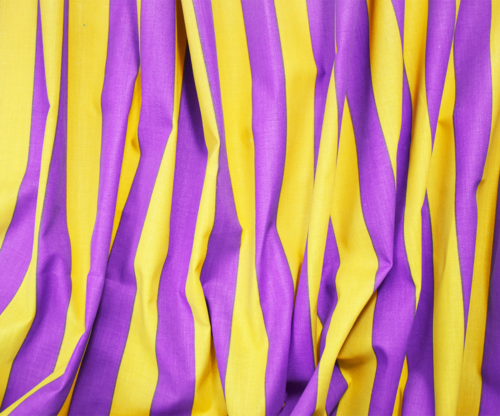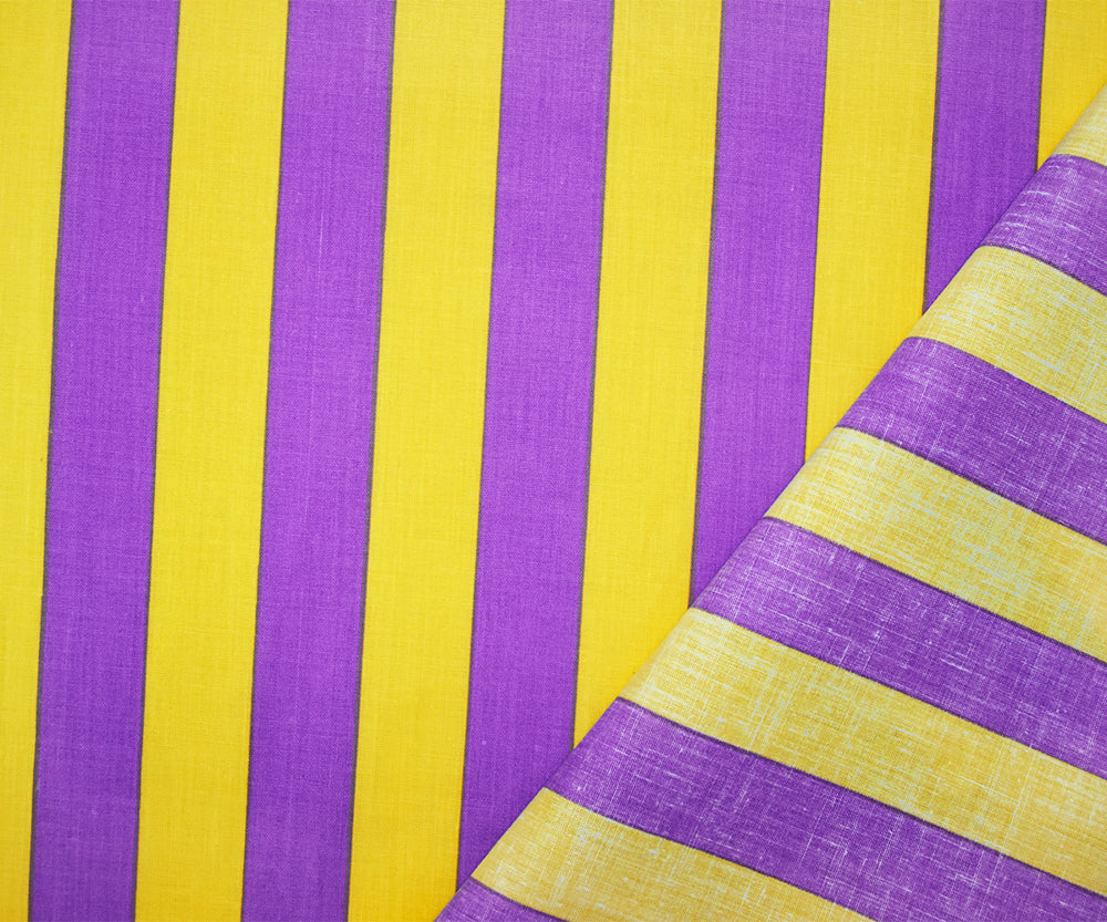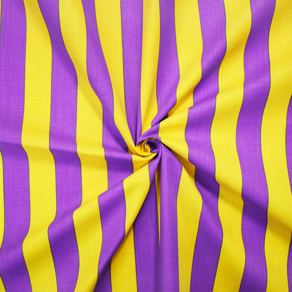 Purple-Yellow Cotton-Poly Japanese Vertical Stripe Printed Woven Fabric
