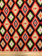 -Red, Pink, Yellow, White, Black Aztec Print Rayon Challis Fabric