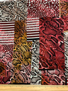 -Red, Black, Brown, & White Multi Animal Patchwork Print Rayon Challis Fabric