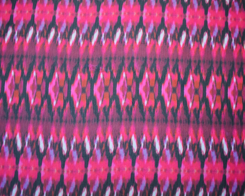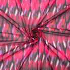 Red-Black-Multi Abstract Printed Crinkle Yoryu Chiffon Woven Fabric